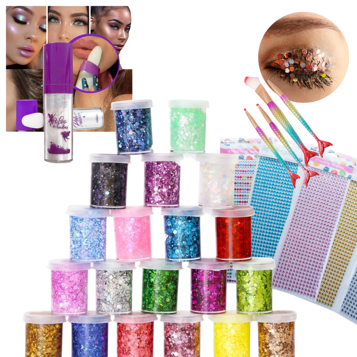 – 15 Potes de Glitter gel de 20 cc. Colores Surtidos
