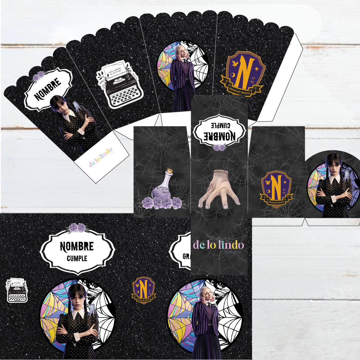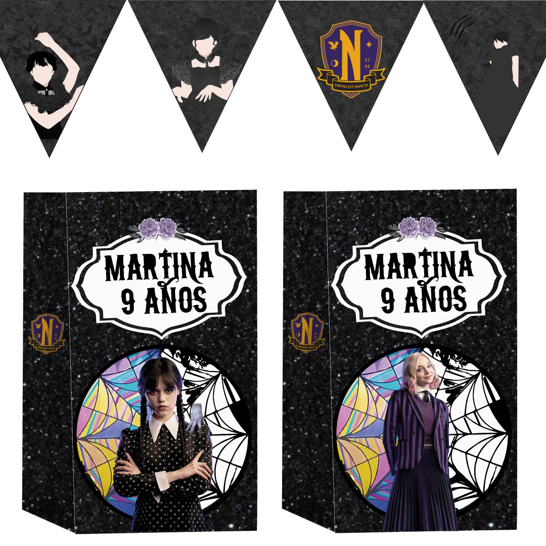 Con este Kit Digital de Merlina y Enid, podés crear diseños únicos que mezclan lo misterioso con lo brillante. Ideal para cumpleaños temáticos, invitaciones, decoraciones y mucho más. ¡Perfecto para quienes aman el contraste y la amistad más peculiar de Nunca Más!